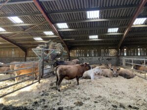 Pour illustrer cela, les lycéens se sont rendus avec Karine Cazenave de la MSA (conseillère en prévention des risques) sur la ferme de la famille Warnery. Ils ont posé des questions sur leur façon de travailler et ont observé différentes installations mises en place pour se simplifier le travail/limiter les risques : une contention des animaux bien pensée (avec une cage de contention), un système ingénieux pour le paillage des box à veaux…